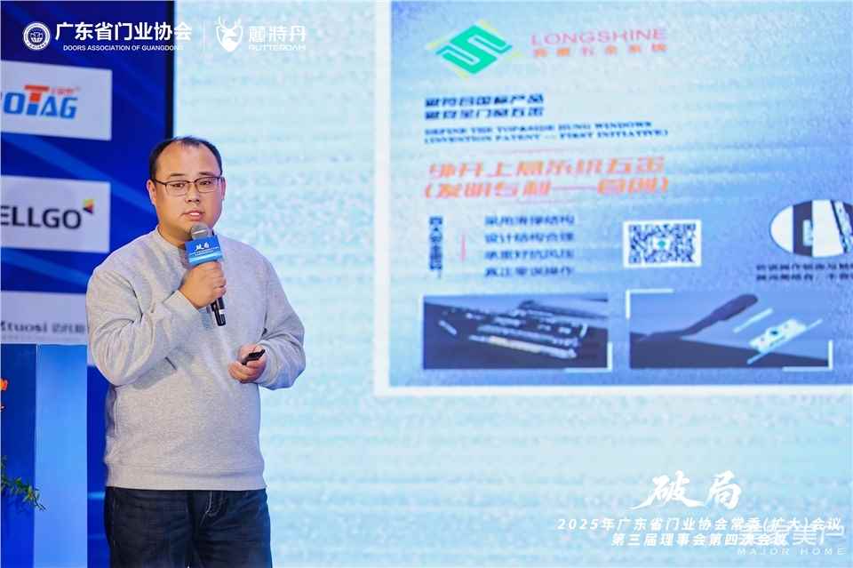 总冠名、麓特丹隔热条董事长郭虓在致辞中表达了与门窗行业协同创新的决心,为门窗同仁提供更加完善的产品与服务,助力广东门窗品牌享誉全国、走向世界。