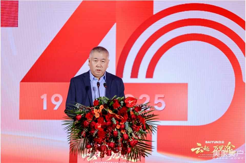 庆典在庄重而热烈的氛围中拉开帷幕。白云科技董事长吴浩中先生上台致辞,向四十年来始终信任与支持白云科技的各位领导、合作伙伴与朋友们,表达了最诚挚的感谢。他表示,过去的四十年仅是一个序章,白云科技将以此次庆典为新起点,与各位伙伴并肩同行,共同为行业进步与美好生活赋能。