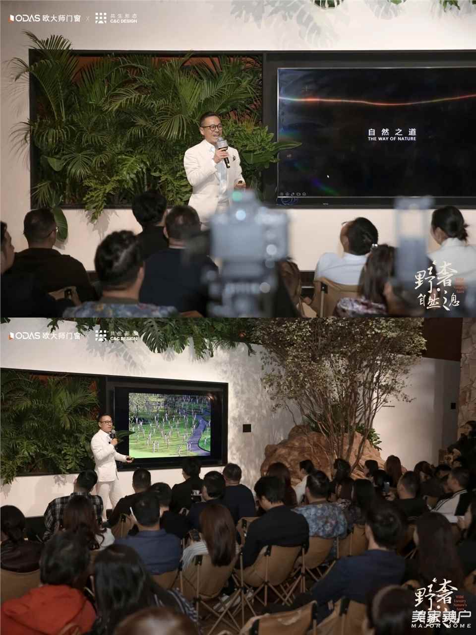 在沙龙分享现场,欧大师门窗2025广州设计周【野奢·自然之息】展位主笔设计师、共生形态创始人彭征先生,以《自然之道》为主题展开深度分享。