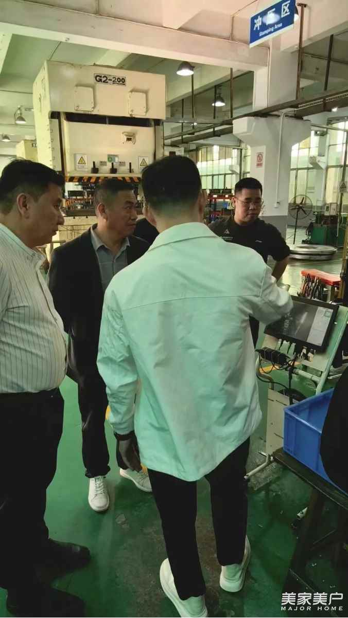 张龙伟董事长一行首先走进一楼自动化生产车间,实地察看了车间的智能化生产布局与标准化作业流程,详细了解了定制五金产品的规模化生产体系。这条产线可实现五金配件的全流程自动化生产,同时通过实时数据溯源,每一件产品的工艺误差都由机器严格把控,从生产端为合作伙伴的品质交付提供保障。
