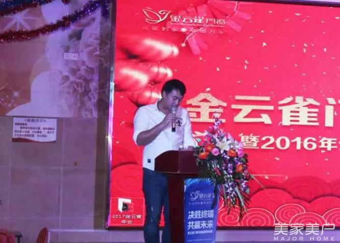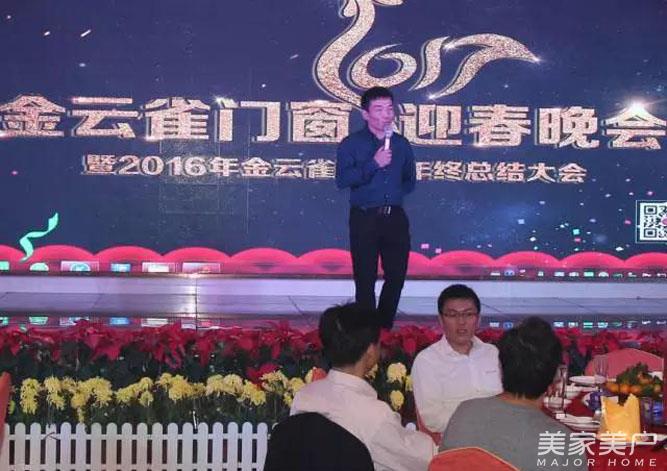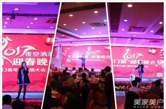 晚会伊始,金云雀营销总监张总上台致辞,回顾过去一年的客户开拓情况和销售情况,并宣布金云雀门窗迎春晚会正式开始。