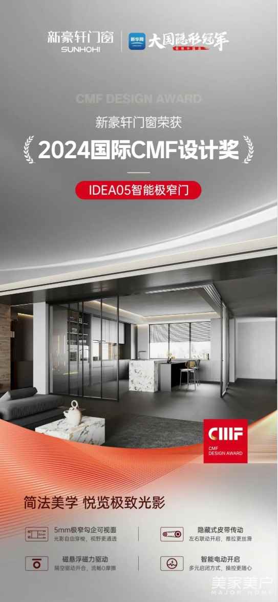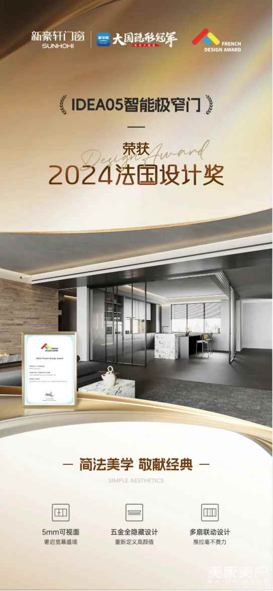 在本次高规格、高水准的国际设计盛会上,新豪轩门窗IDEA05 PRO智能极窄门,凭借卓越的设计理念与创新实力,荣膺大赛“产品设计奖”。新豪轩门窗也是中国门窗行业首家获此殊荣的品牌。这不仅是对该产品卓越工业设计的高度认可,更是对新豪轩门窗以创新设计提升人居生活品质理念的褒奖,标志着企业在技术创新与市场应用取得成功的基础上,于设计美学领域同样获得了国家级权威赛事的重要肯定。