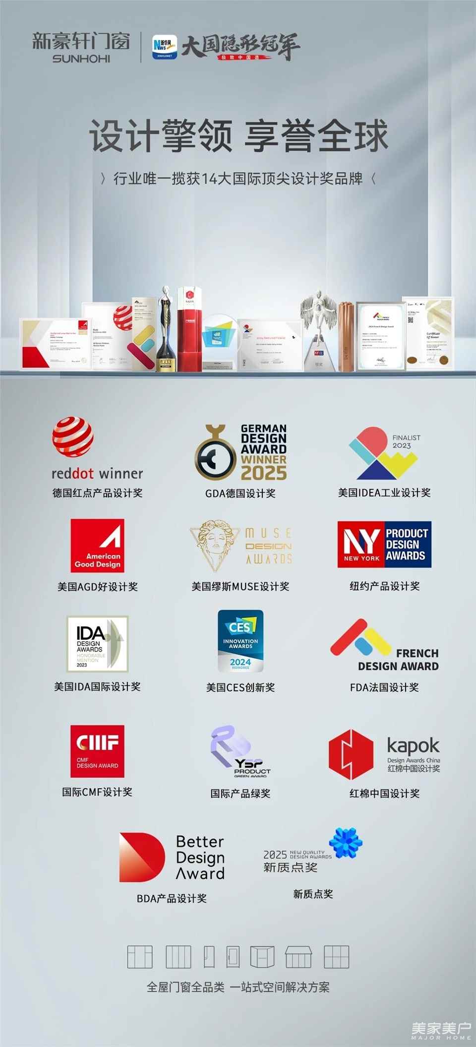 此次荣获“越来越好”国际设计大赛奖项,是IDEA05系列产品设计卓越性的又一有力印证。此前,该系列已凭借其前瞻的设计与创新理念,屡获国际国内权威设计奖项的青睐,包括享誉世界的法国FDA设计奖、德国GDA设计奖、国际CMF设计奖,以及国内的新质点设计奖、粤港澳大湾区创新大奖等。这一系列荣誉,构筑起新豪轩门窗在设计创新领域的坚实口碑,展现了其产品赢得全球专业视野认可的强大实力。