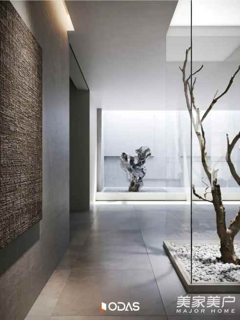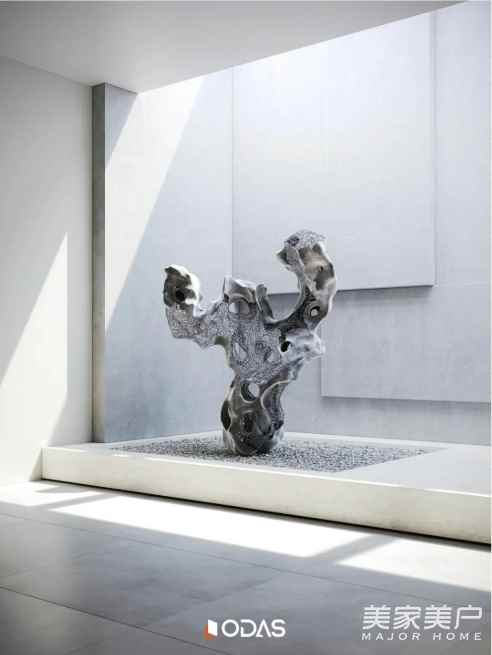整体设计遵循“留白哲学”,让艺术藏品在简约的空间基底中自在呼吸。家庭成员各异的审美藏品在此交融碰撞,共同织就家庭独特的精神底色。穿过门扉,踏过石径,每一次归家都成为一场穿越静谧、抵达丰盈的心灵旅程。