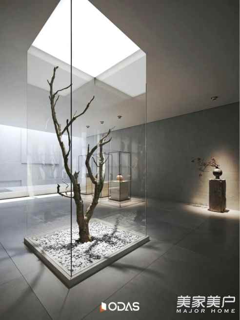 在这里,天光、艺术、庭院景致经由通透的门窗融为一体,形成一个静谧而流动的沉浸式场域。这里既是品鉴珍藏、思想交锋的私密空间,亦是融合了休闲洽谈、品茗会客的家庭社交厅,艺术与生活、沉思与欢聚,在此无界共生。