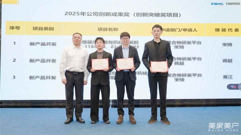 副总经理兼总工程师陶小乐博士宣布了2025年度创新成果获奖名单。本次共评选出15项创新成果奖。公司领导为获奖技术代表颁发荣誉证书,高度肯定技术团队在创新实践中取得的突出成效与贡献。