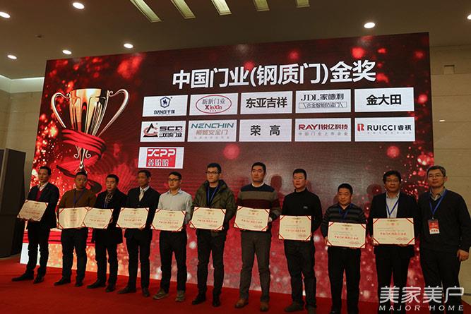 嘉宾为中国门业(钢质门)金奖企业颁发荣誉证书