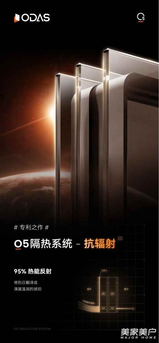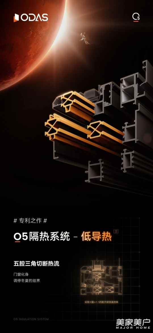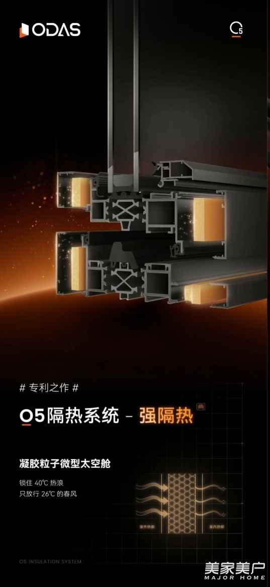 针对中国不同地域复杂多变的气候特点,欧大师门窗自主研发O5保温隔热降噪系统。有效提升门窗的保温隔热降噪性能,满足中国健康人居对门窗的性能需求;采用航空航天黑科技高分子纳米硅凝胶填充腔体技术,进一步提升整窗的保温隔热降噪性能;行业独有的X型五腔三角体隔热条,热对流阻隔效果提升60%,为门窗的节能性能再添保障。