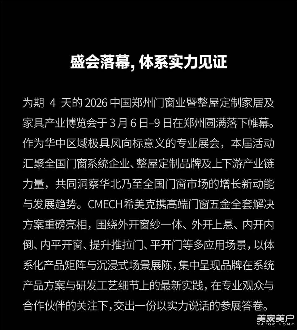 链接中原·共鉴新势 | CMECH希美克 2026郑州门窗业博览会收官!