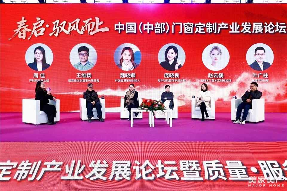 春启·驭风而上——中国(中部)门窗定制产业发展论坛由环球网家居主编周佳主持,图森股份副董事长兼总裁王维扬、林源智慧家居创始人魏晓娜、冠牛智能整体家居总裁庞晓良、云鹤木门整木定制总经理赵云鹤、东威利总经理叶广柱齐聚一堂,围绕2026年的破局之道展开深度探讨。