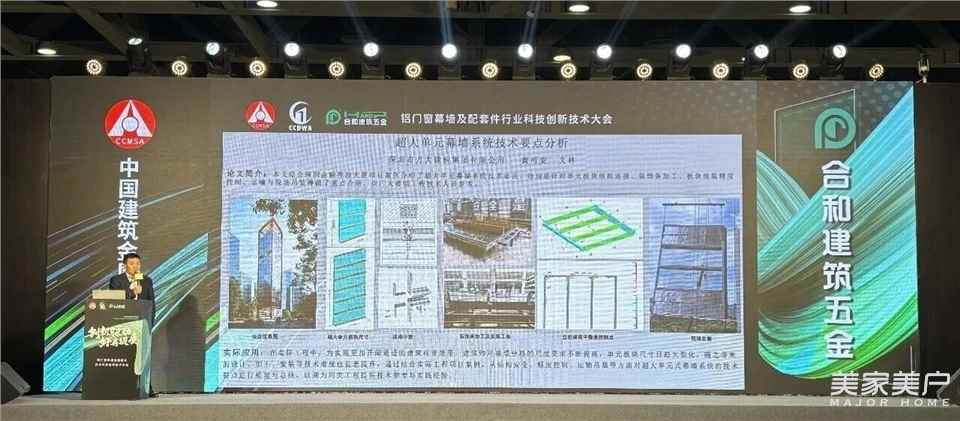 随后,大会进入核心的技术分享环节,合和建筑五金深度参与其中,既带来实战干货,也搭建起行业交流的桥梁。 合和建筑五金技术经理林魏新率先登台,以《超大型建筑平开窗五金系统配置应用探讨》为题,结合工程案例,深入剖析了超大型平开窗五金系统的设计要点、配置逻辑与应用前景,为现场同仁提供了宝贵的实践参考。