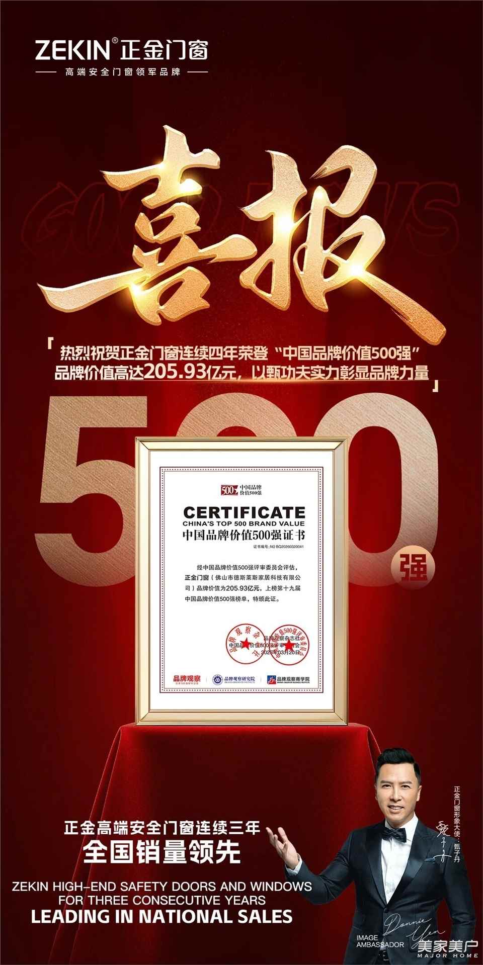 205.93亿元!正金门窗连续四年荣登中国品牌价值500强 用实力诠释价值 以高度引领行业