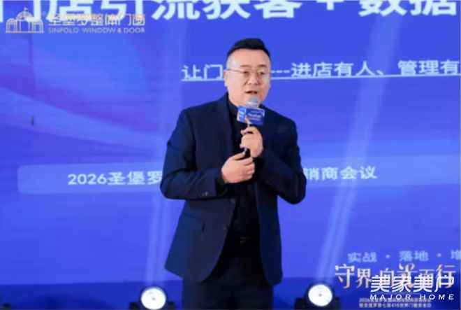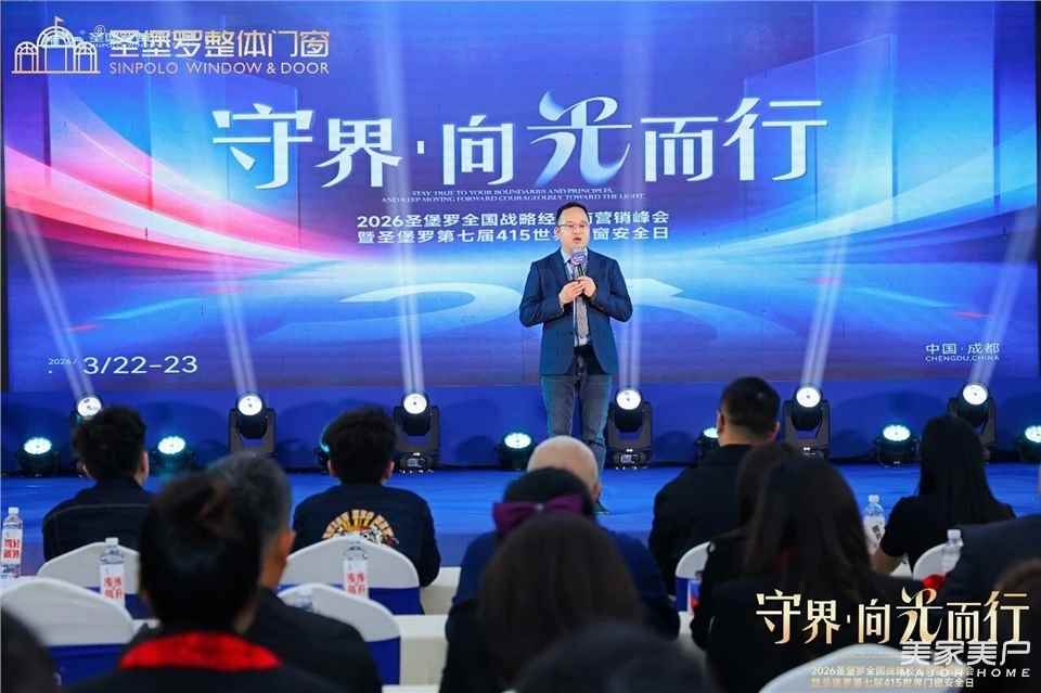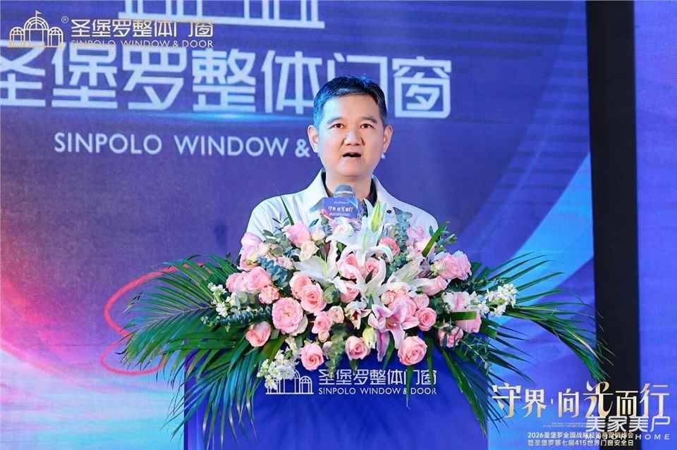 圣堡罗家居集团董事长吴国洪先生登台,发布2026年度品牌战略报告。从行业宏观趋势研判到品牌微观发展策略,一张清晰而充满力量的年度蓝图在全体与会者面前徐徐展开——方向感,是最大的确定性。吴董指出,圣堡罗以品质立本,以新媒体破局,深耕存量蓝海,携手经销商实干笃行,聚力共创门窗行业新未来。