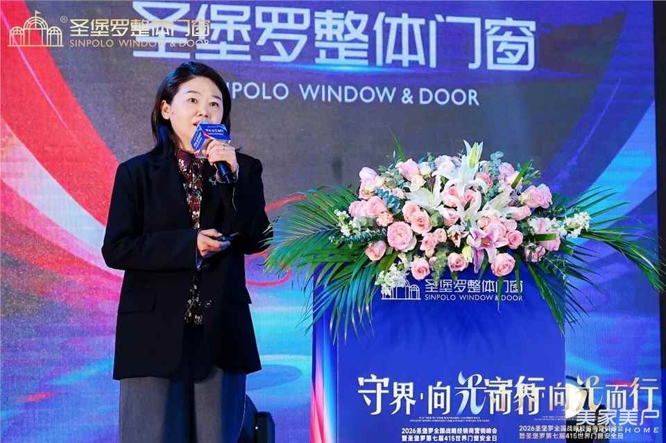 紧随其后,圣堡罗家居集团副总裁杨芬带来了一次对"卓越制造"的深度分享。她提到,圣堡罗严控品质源头,严守品质,全批次抽检。同时,材料与工艺全面升级,制造端全力提效确保交付,用心做好每一扇门窗。