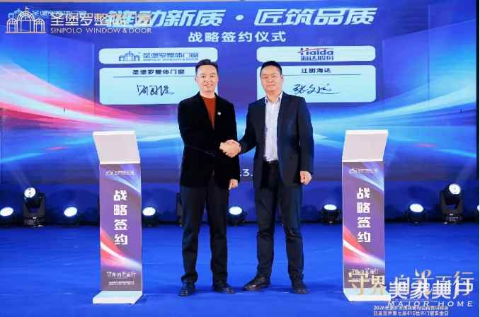 峰会上,圣堡罗家居集团董事长吴国洪,先后与老虎表面技术、江阴海达橡塑、博奥腾玻璃、希美克五金、德国好博五金(HOPPE)、深圳好博五金、集泰化工共7家核心供应链代表完成战略签约,从源头锁定高品质原材料,以供应链的确定性保障产品品质的稳定性,用硬核实力诠释“链动新质・匠筑品质”的承诺。