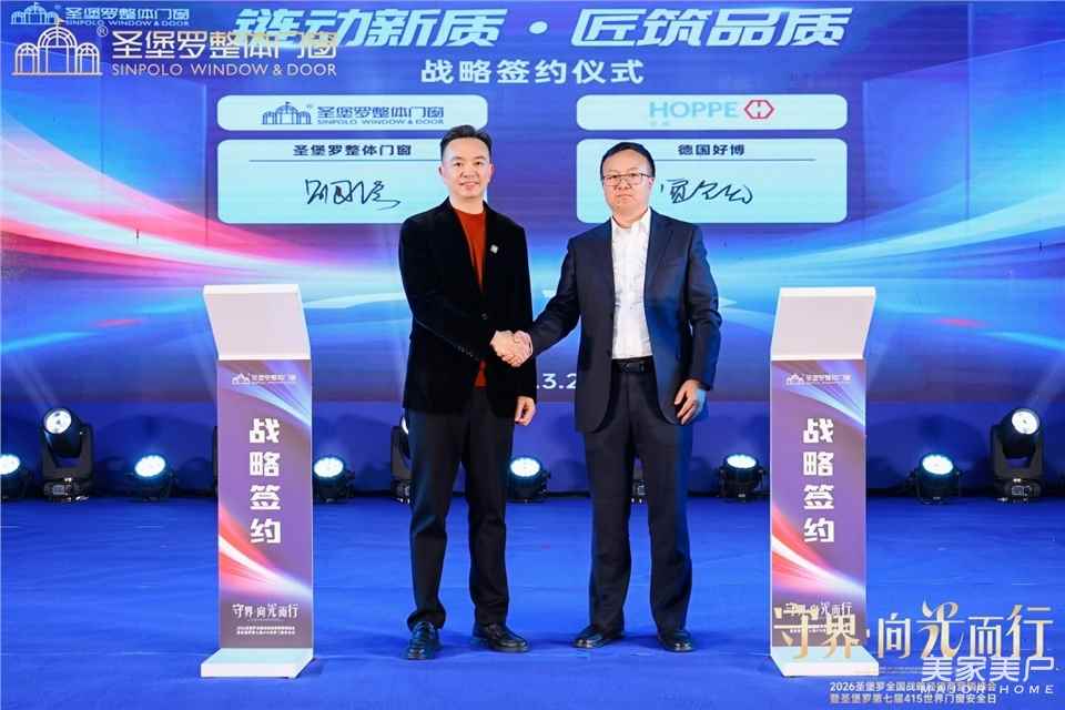 与此同时,圣堡罗家居集团董事长吴国洪先后与老虎表面技术、江阴海达橡塑、博奥腾玻璃、希美克五金、德国好博五金(HOPPE)、深圳好博窗控、集泰化工共七家全球知名的核心供应链代表完成战略签约。从源头锁定高品质原材料,以供应链的确定性保障产品品质的稳定性,这一举措被业内视为品牌夯实品质护城河的关键落子。