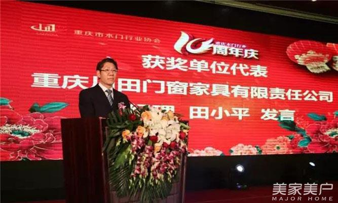 获奖单位代表重庆川田门窗家具有限公司总经理田小平发言