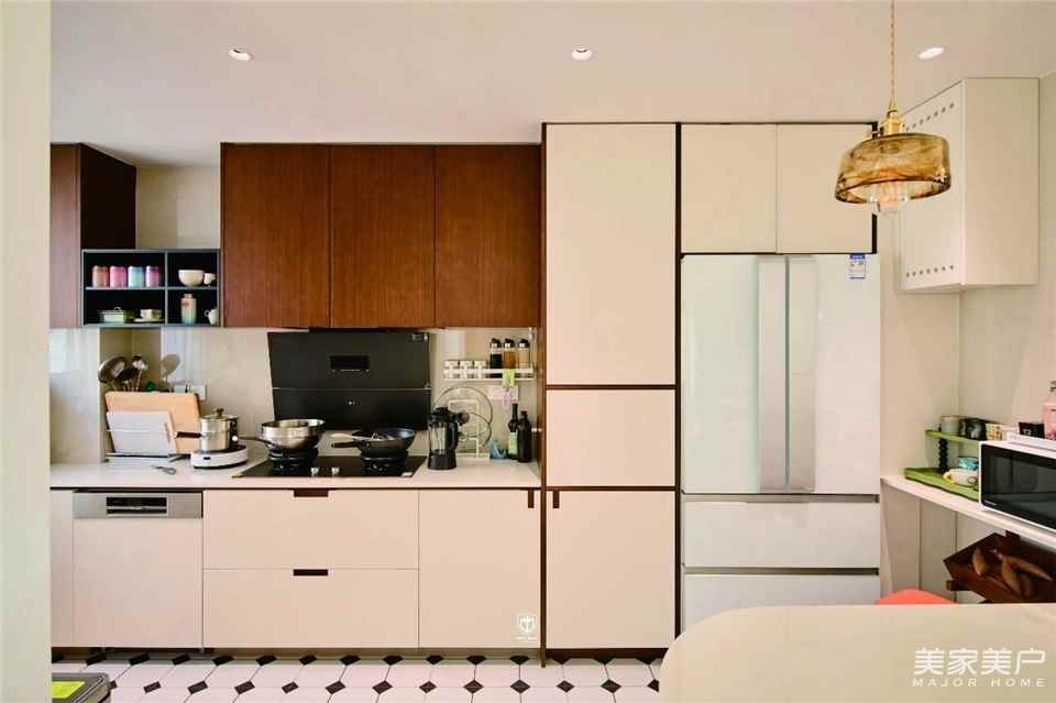 奶白柜体搭配深棕木色,将烟火气裹进温柔设计里,功能与美感共生,让每一餐、每一次下厨,都成为治愈日常的小仪式。