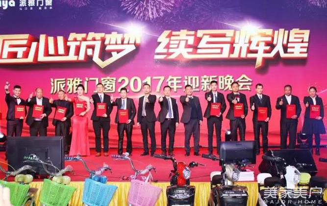 2017年1月16日,在派雅门窗总部举办了“匠心筑梦?续写辉煌”2017年迎新晚会。派雅门窗董事长李钧洪和李钧海偕同总经理易绍光、营销总经理陈海全、行政经理彭友财等企业领导和派雅家人们举杯同欢,共度良宵,喜迎新年!