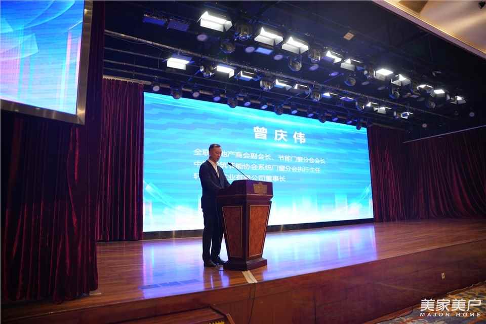全联房地产商会副会长、节能门窗分会主任委员、中国建筑节能协会系统门窗分会执行主任、轩尼斯实业有限公司董事长曾庆伟致辞并宣布晚宴开始。