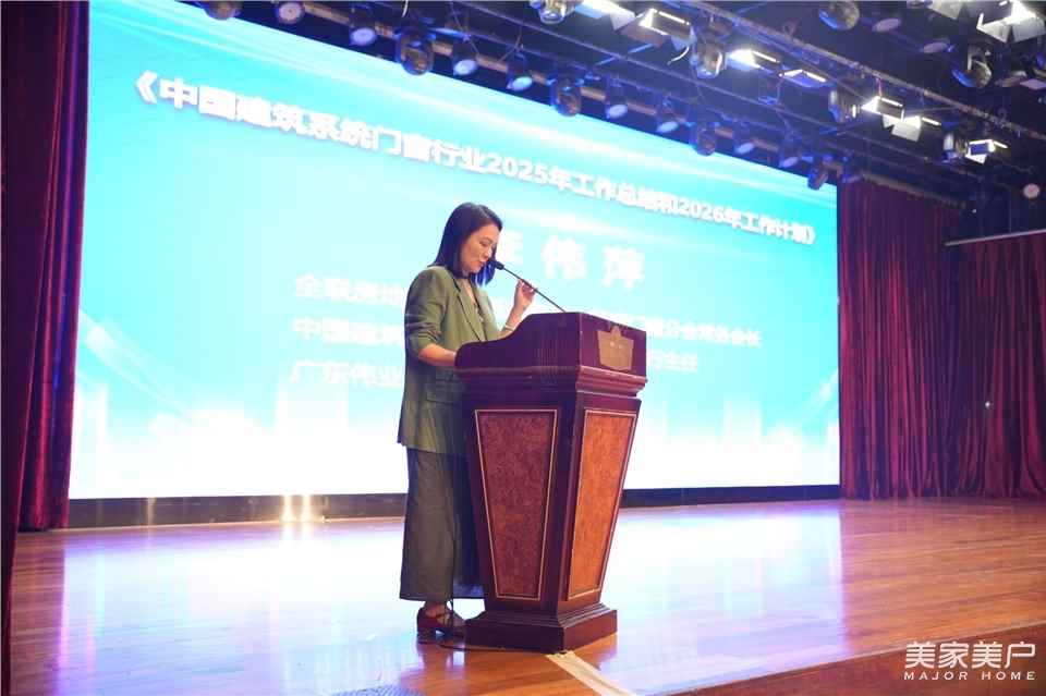 全联房地产商会副监事长、节能门窗分会常务主任、中国建筑节能协会系统门窗分会执行主任、广东伟业集团董事、总经理李伟萍做《中国建筑系统门窗行业2025年工作总结和2026年工作计划》。